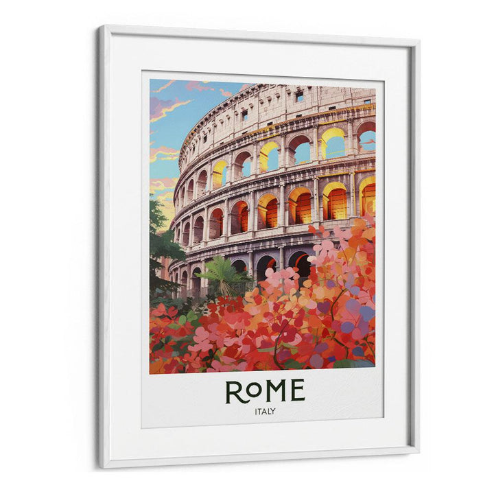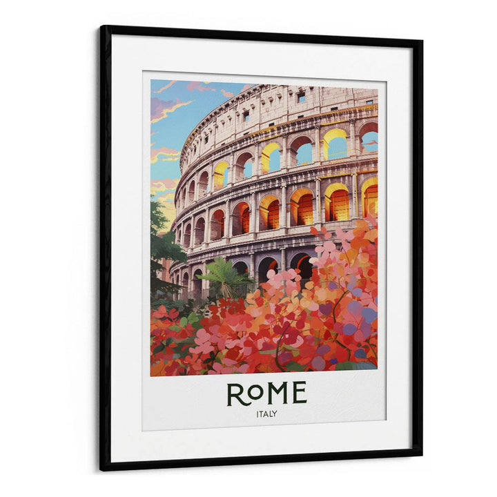 Immerse yourself in the enchanting allure of Rome with our stunning travel art print, "Romantic Reverie: A Rome." This exquisite vintage poster beautifully captures the essence of the Eternal City, featuring the iconic Colosseum as its centerpiece.