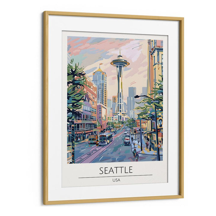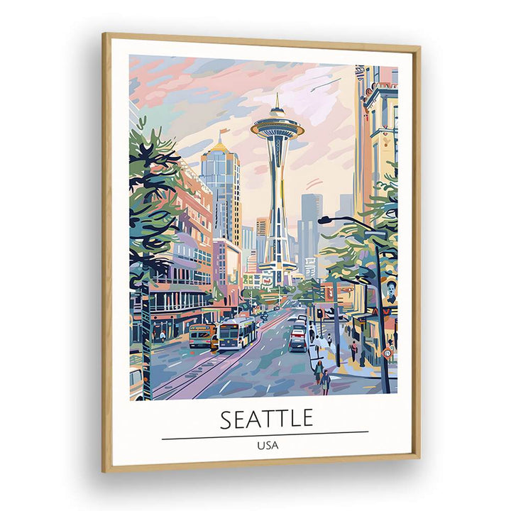 seattle-usa travel posters in Oak Wood Frame With Mount
