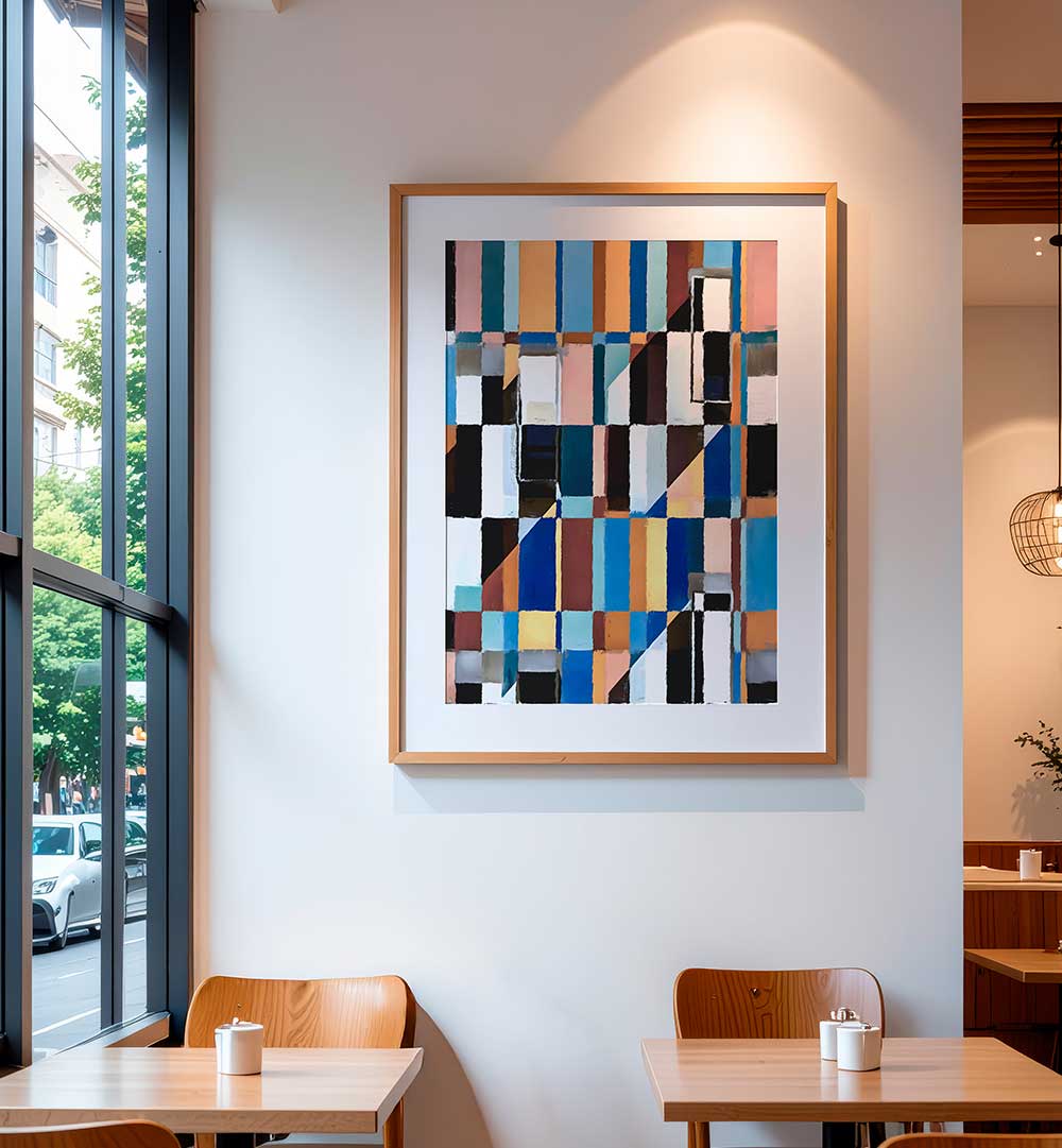 Inspired by Scandinavian design, this art print offers geometric elegance with a warm, natural palette that complements a wide range of interiors—from serene neutrals to bold statement rooms.