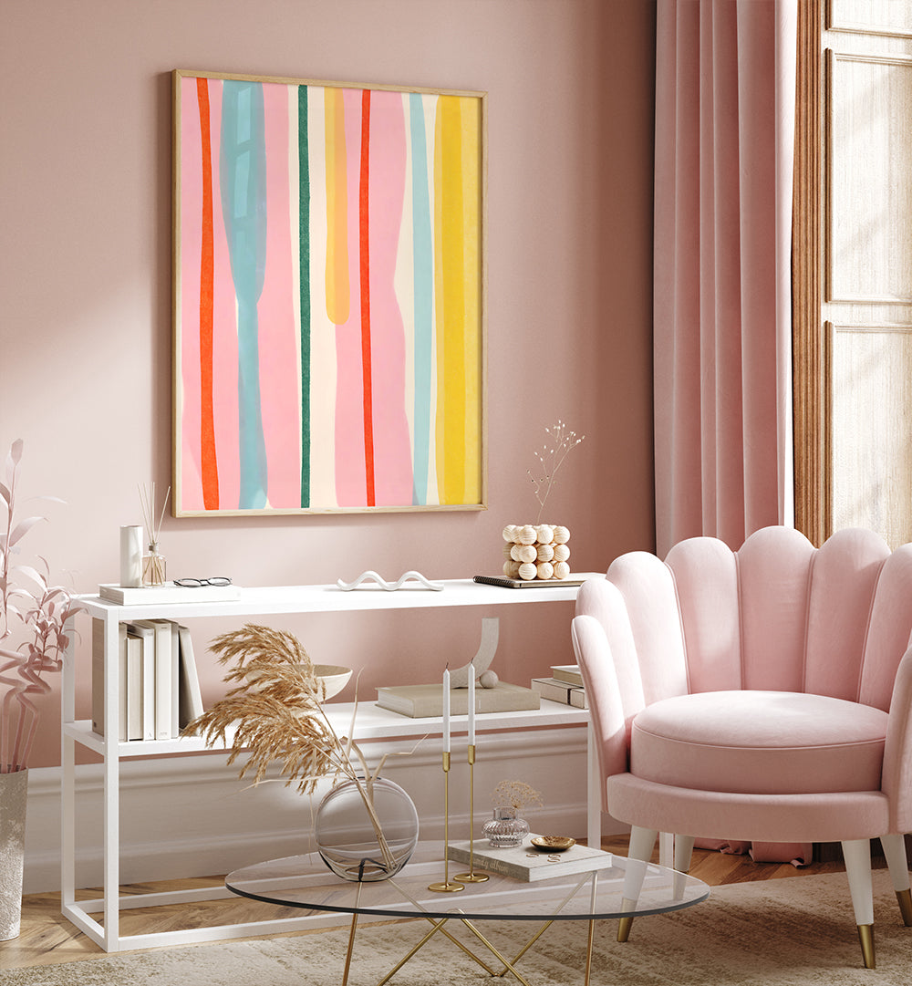- Bold abstract compositions that grab attention and set the tone for the room.