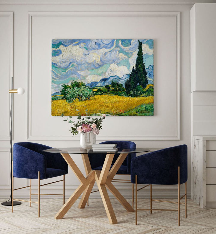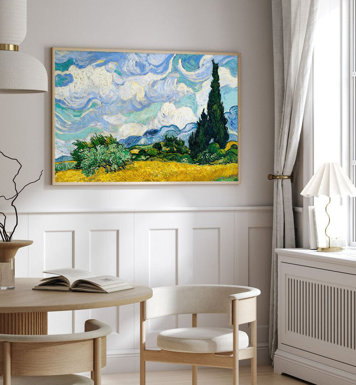 Whether you're an art enthusiast, a lover of vintage aesthetics, or simply looking to add a touch of elegance to your home or office, "Wheat Field with Cypresses" serves as a stunning visual representation of nature's beauty.
