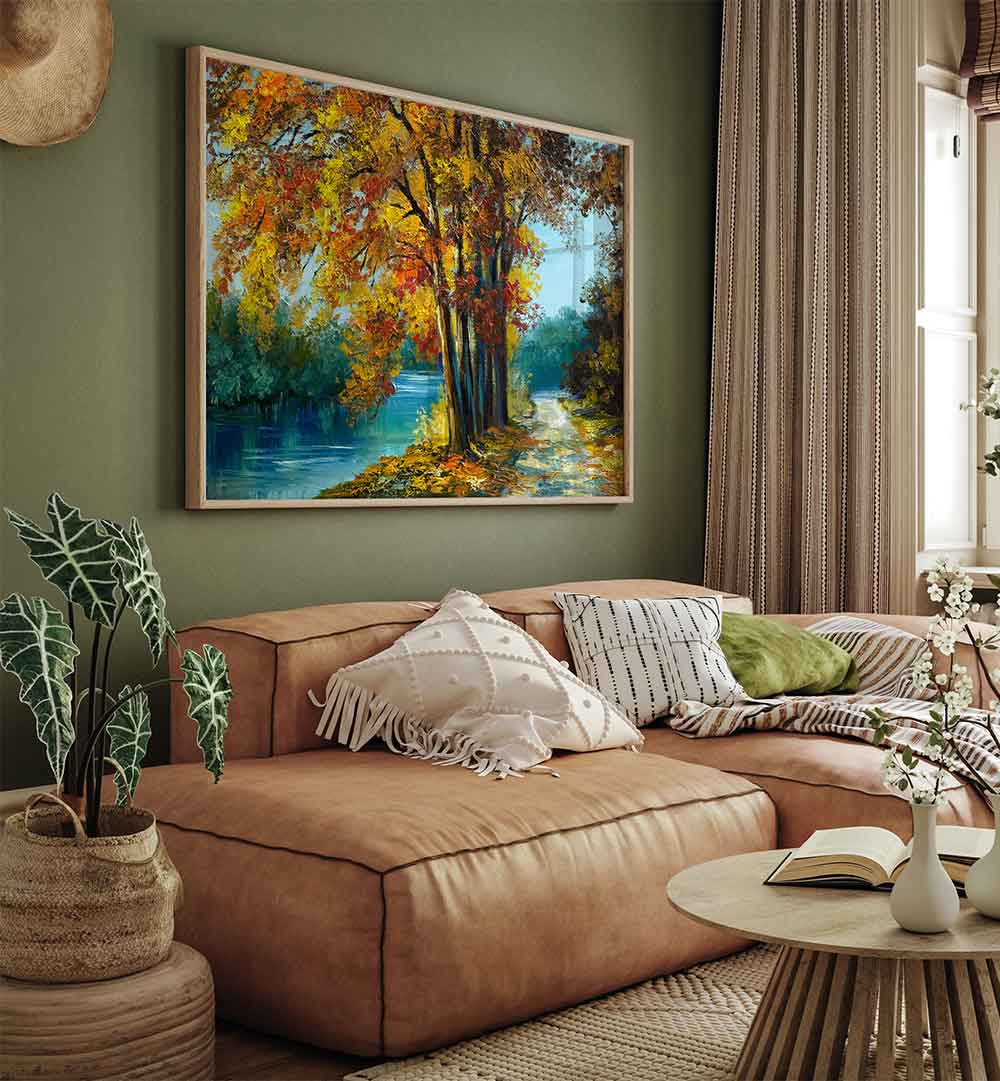Vibrant autumn colors in the AUTUMN PATHWAY, VINTAGE EUROPEAN PAINTINGS, enhancing any elegant space.