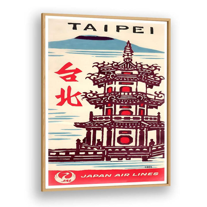 Taipei vintage travel poster featuring a pagoda design, perfect for home decor enthusiasts. TAIPEI, VINTAGE TRAVEL POSTERS.