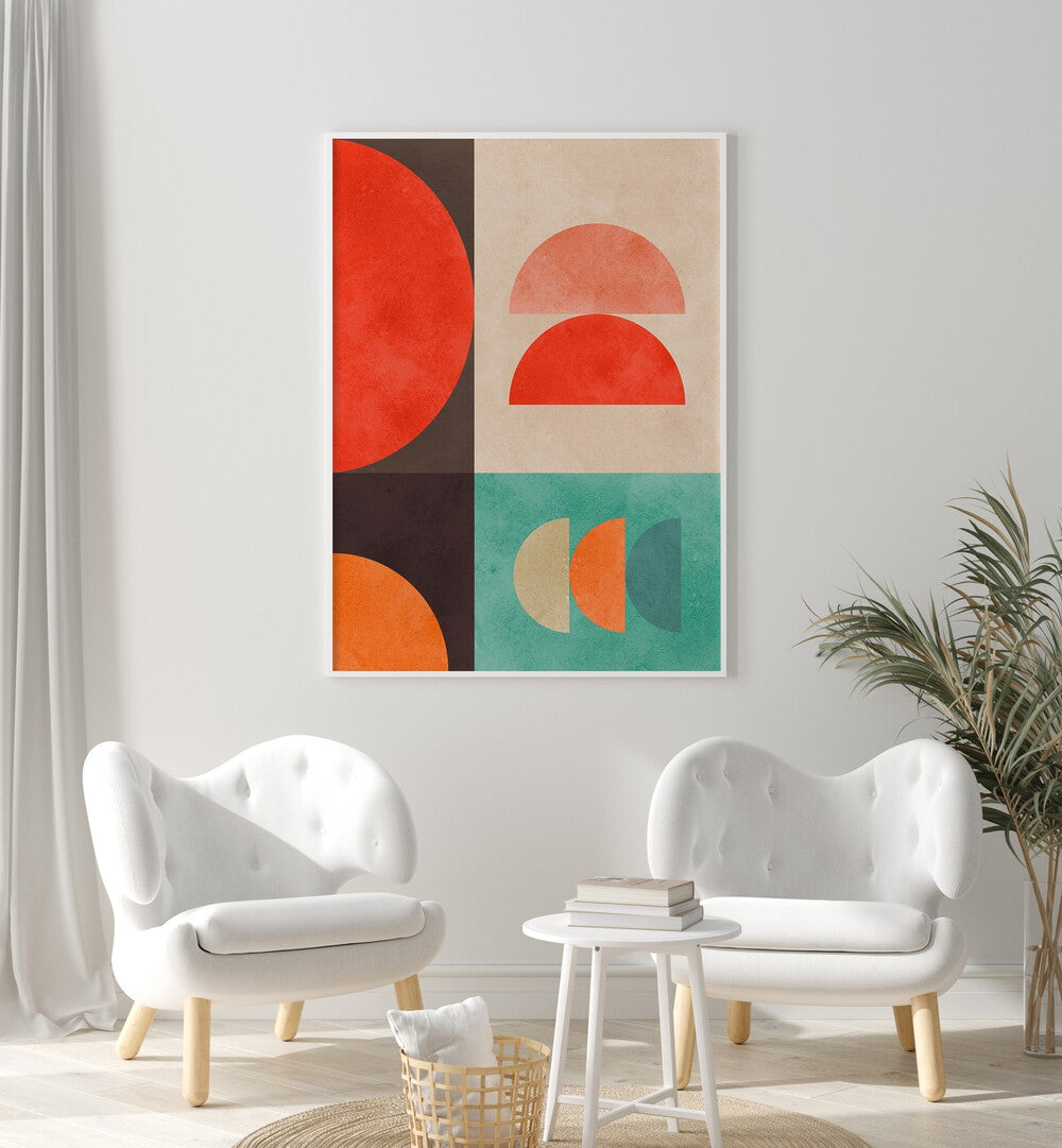 CIRCLES IN HARMONY XI, GEOMETRIC ART PRINTS feature vibrant shapes in a balanced composition, perfect for modern decor.