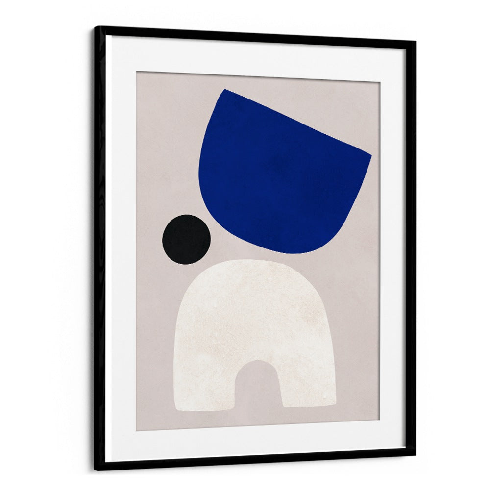 Stylish CURVED SHAPES VI, GEOMETRIC ART PRINTS featuring elegant forms in blue, black, and white, perfect for decor.