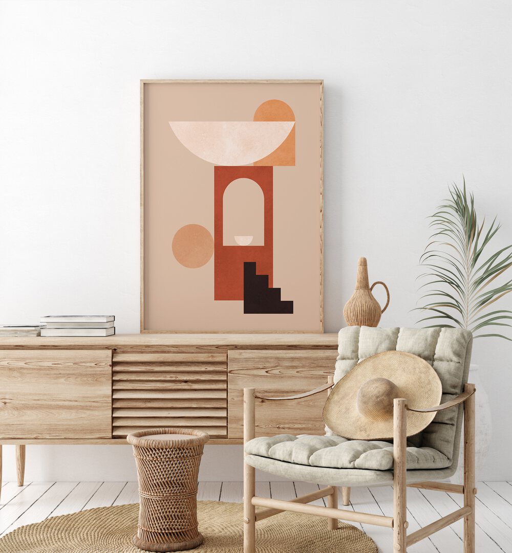 Stylish GEOMETRIC COMPOSITION II, BOHO ART PAINTINGS, showcasing modern abstract shapes in warm hues. Perfect for contemporary decor.