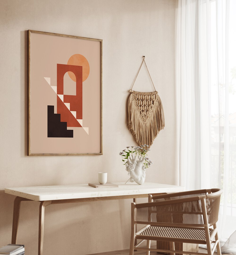 Stylish GEOMETRIC COMPOSITION III, BOHO ART PAINTINGS, featuring modern shapes and warm tones for sophisticated decor.