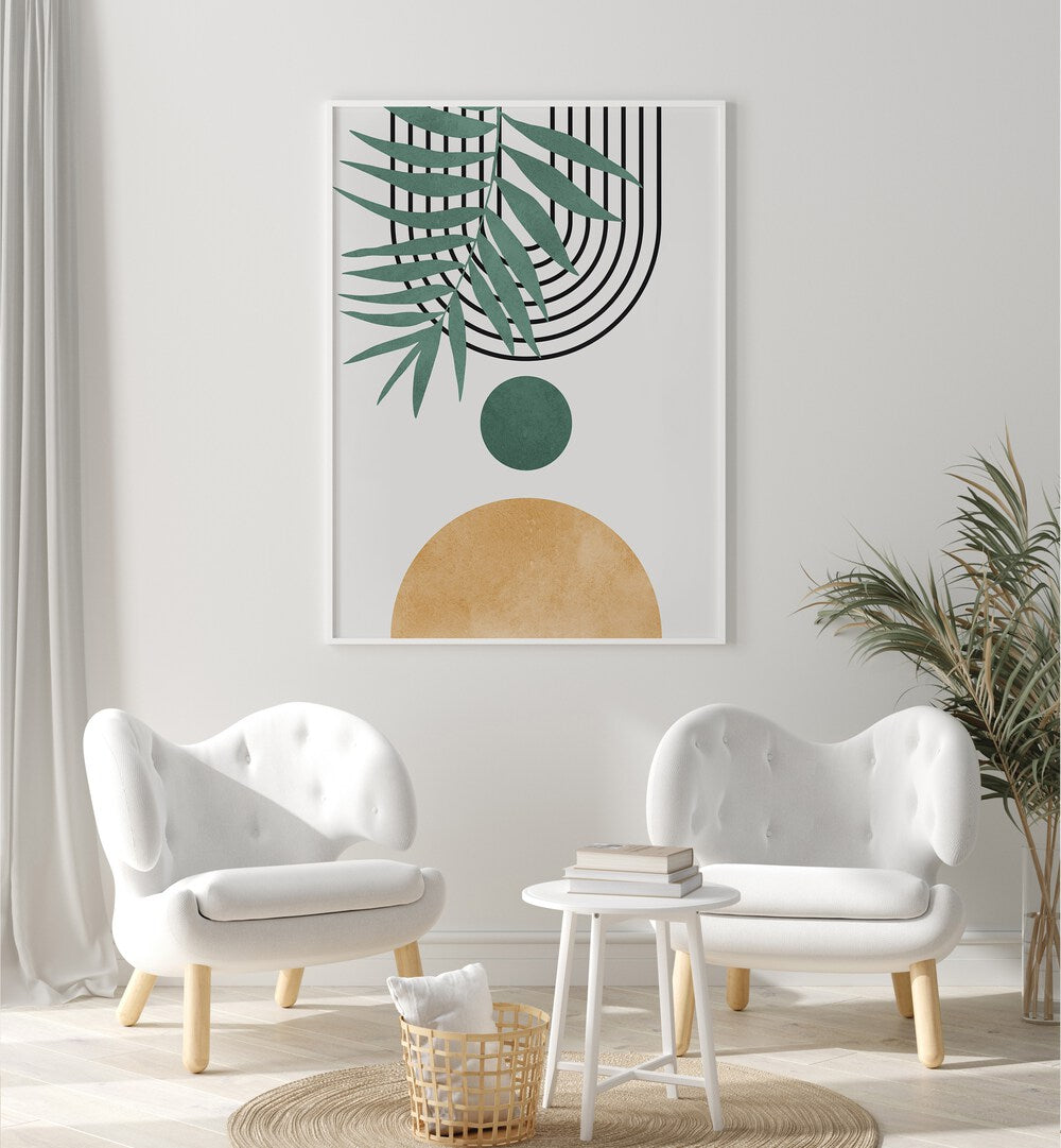 This stunning WATERCOLOR LEAVES V print is perfect for a variety of settings—be it your living room, office, or bedroom. Its contemporary style effortlessly complements any interior design, adding a chic touch to your decor.