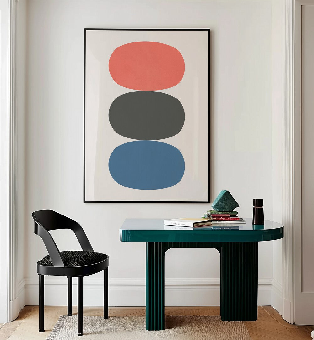 The OVALS IN BALANCE 1 stands out with its captivating oval shapes that create a sense of balance and tranquility. The carefully curated design draws the eye and invites conversation, making it an ideal centerpiece for living rooms, entryways, or workspaces.