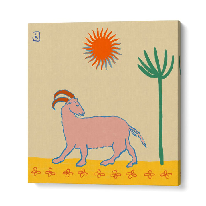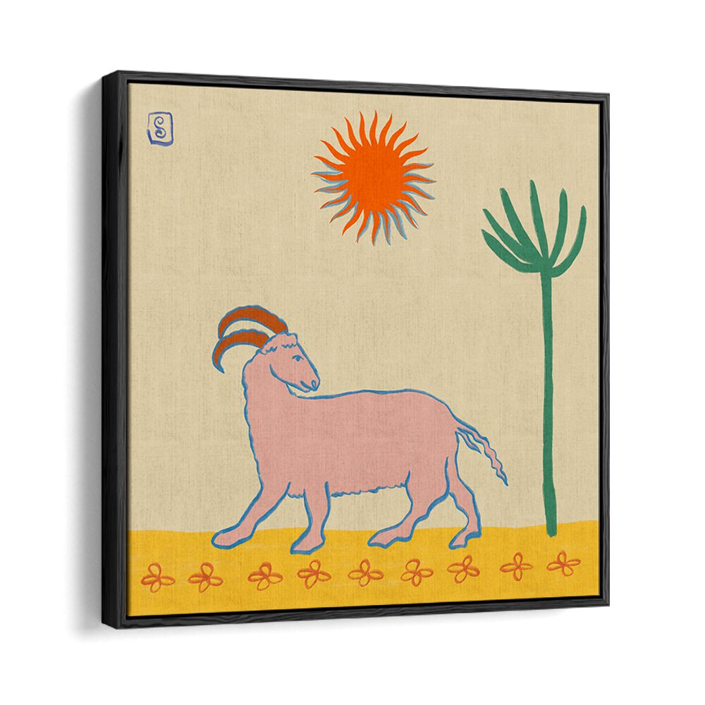 Stunning ARIES III, ZODIAC poster featuring a whimsical goat and sun, perfect for stylish home decor.