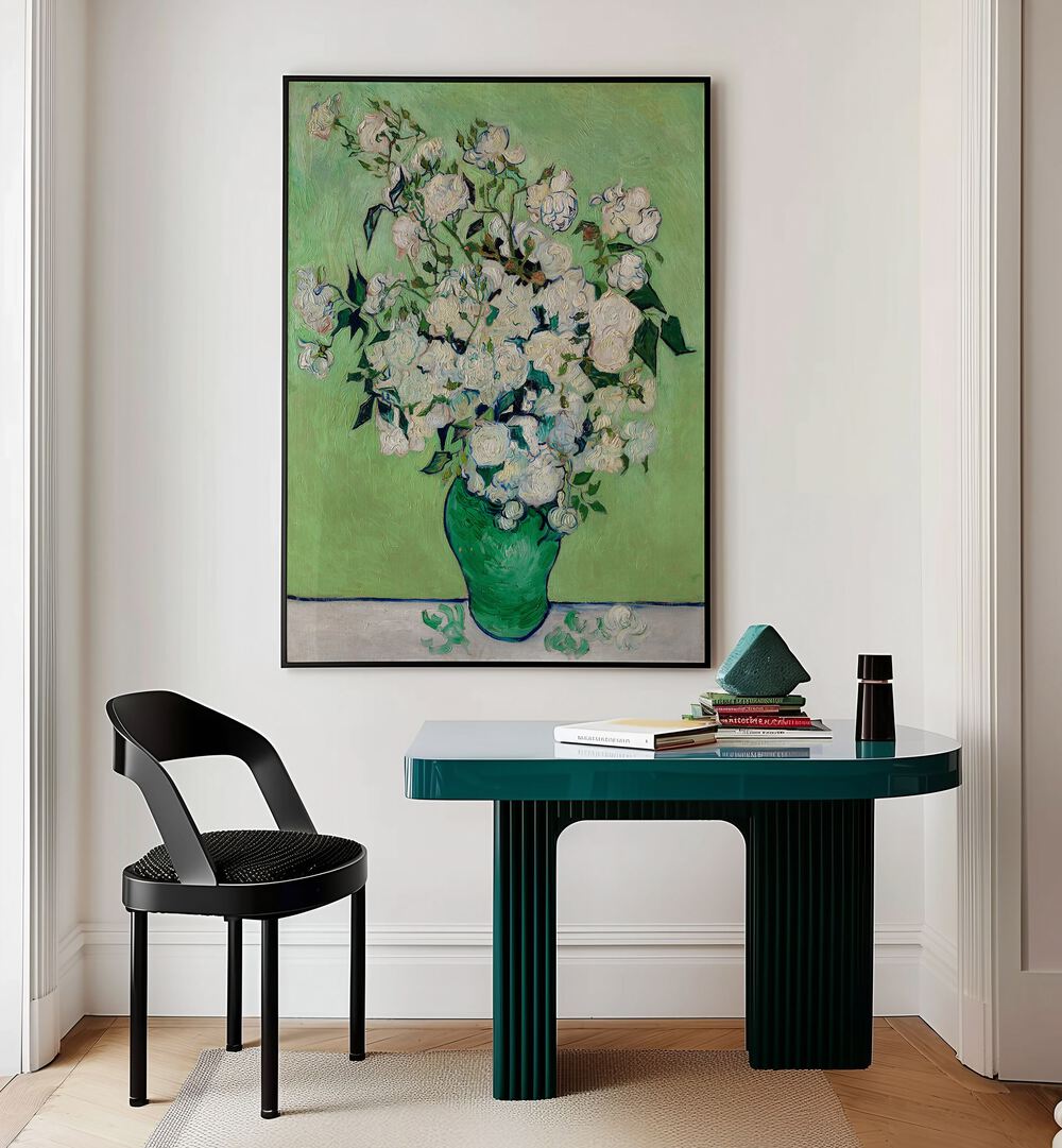 Step into the vibrant world of Vincent Van Gogh with "Blooms of Eternity: Vincent Van Gogh's Roses, 1890." This stunning piece is now available on premium museum-grade canvas and fine art media, offering you the chance to bring home a slice of art history.