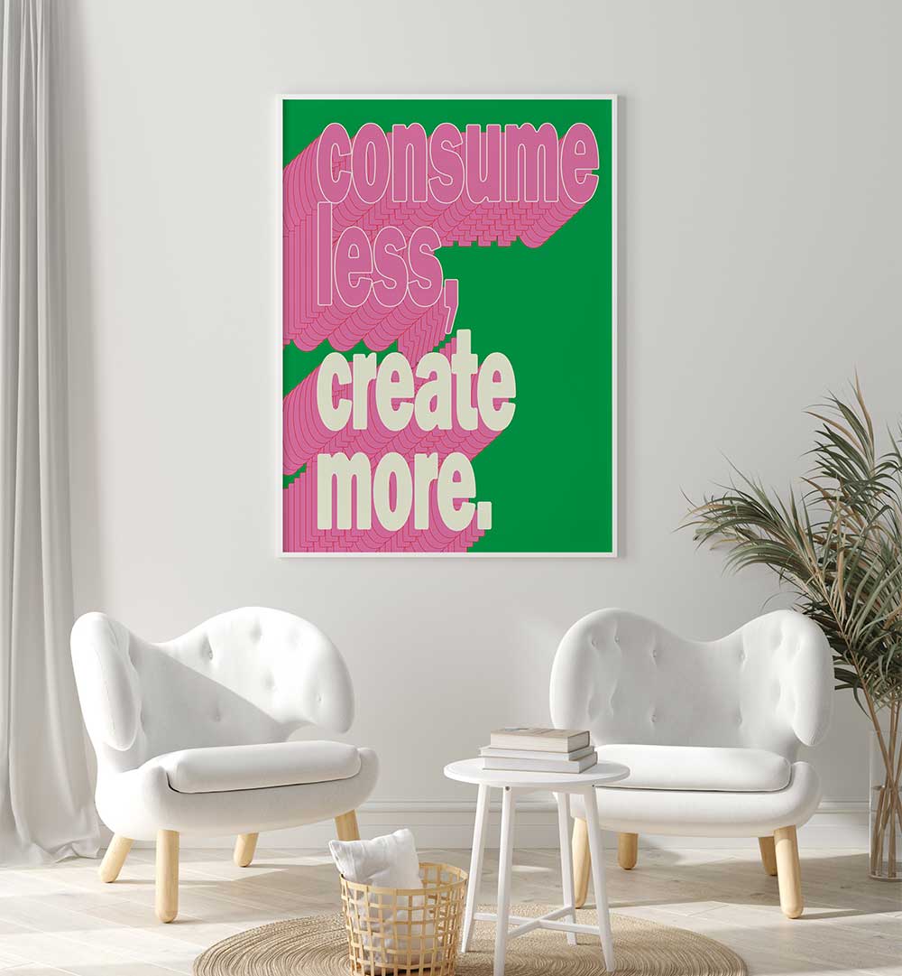 Transform your living space with our CONSUEM LESS CREATE MORE quotes and typography posters, a perfect blend of inspiration and style. These stunning prints bring a unique artistic flair to any room, making them ideal for both home and office decor.