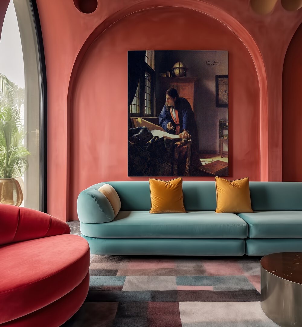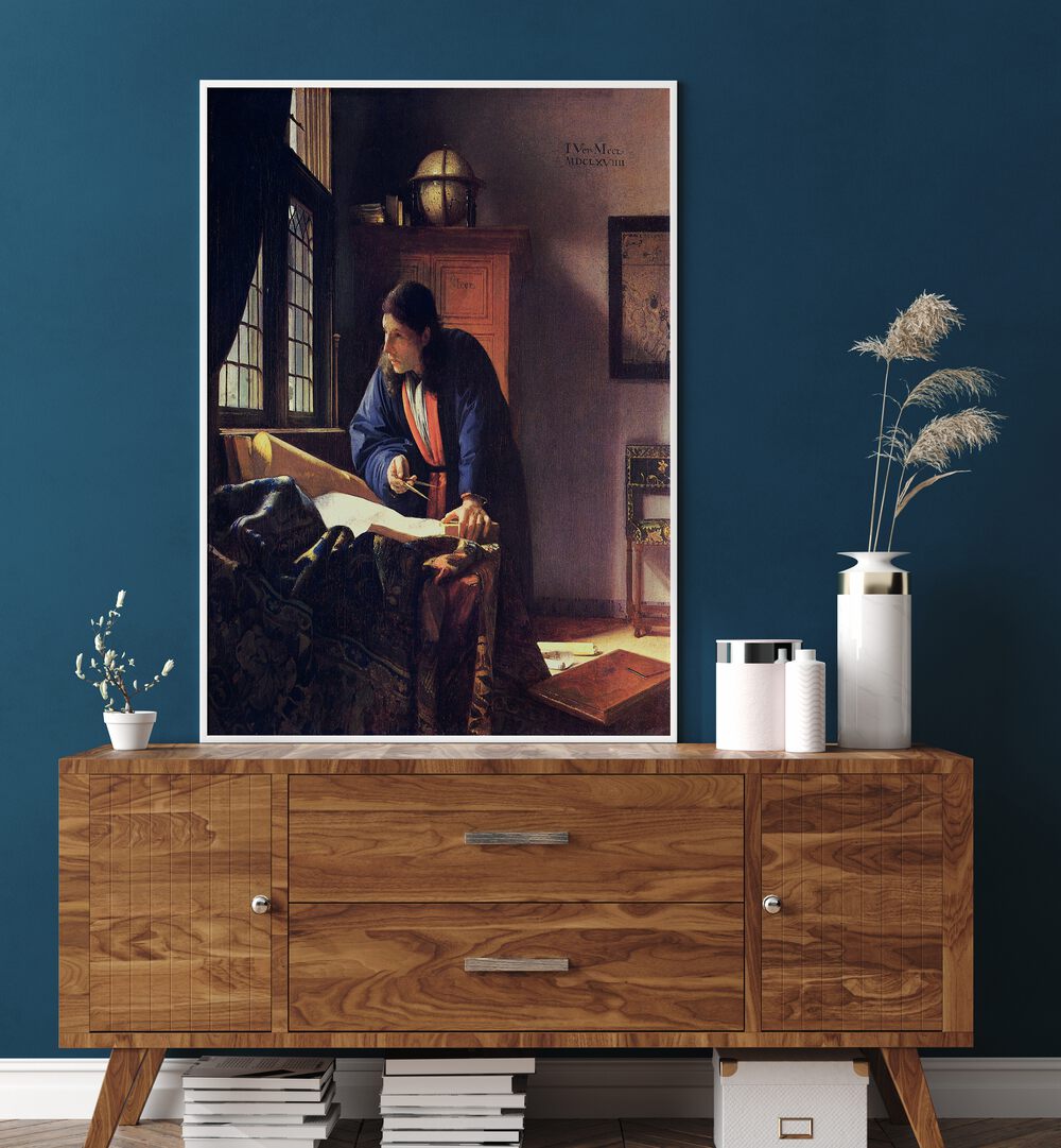 Enhance your environment with the thoughtful artistry of Johannes Vermeer. This painting not only serves as a beautiful visual representation but also as a reminder of humanity's enduring quest for knowledge and understanding.
